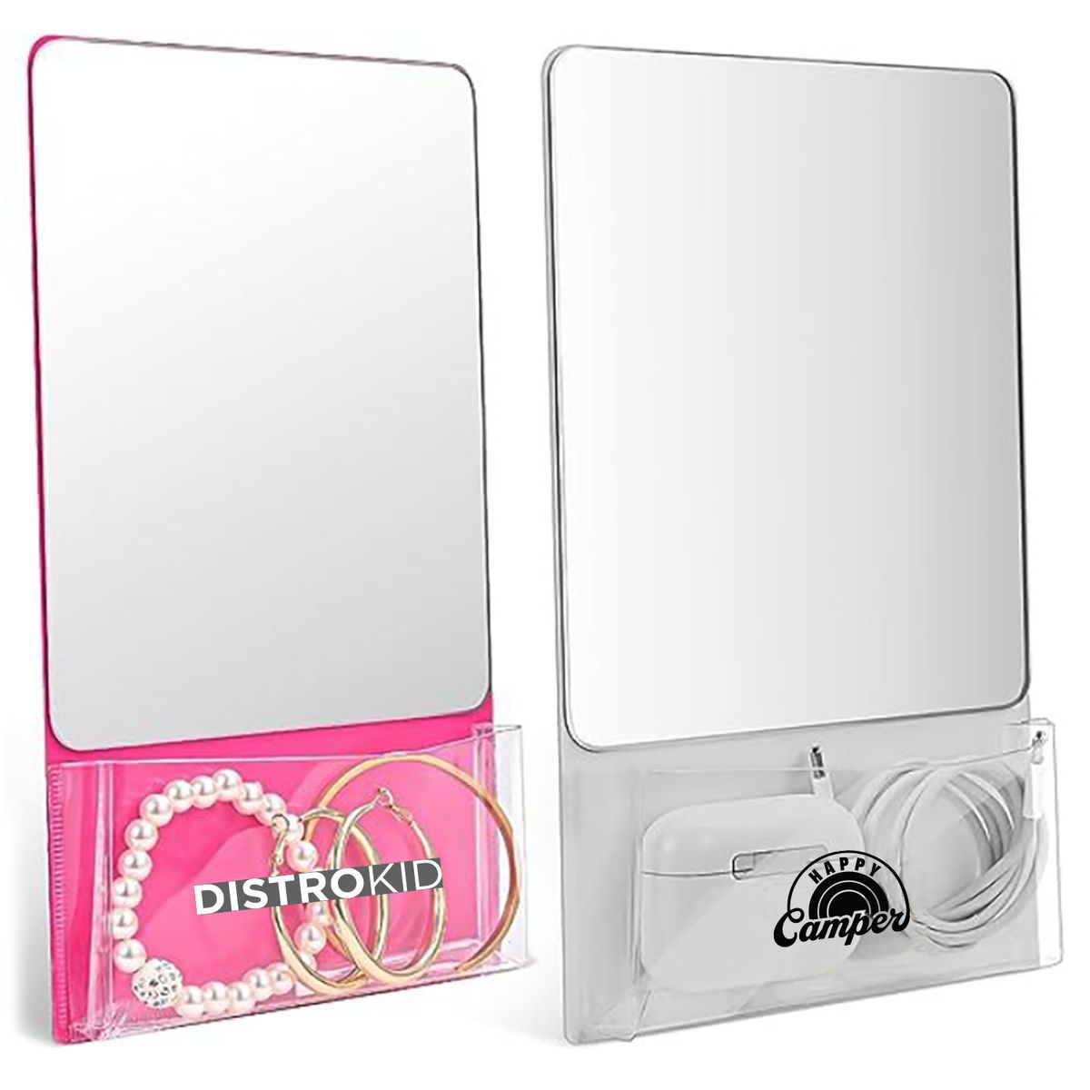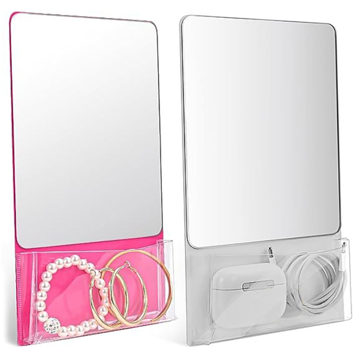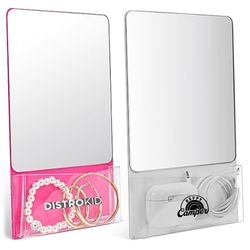 This locker mirror comes with an entire magnet on the back side which allows you to attach it onto any metal surface and it will stay firmly attached. It has a real mirror so the glass is not distorted and is great for a quick check before you walk out the door. Use it in a school or workplace locker, an office cabinet or desk space, dorm room at college, or even on the refrigerator at home. It is the perfect mirror for any space! It comes with a clear pocket on the front side so you can hold a comb or brush, makeup, pens, markers, notes, keys or sunglasses.